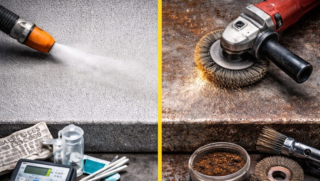 - O que você precisa controlar: abrasivo adequado, contaminação por sais, poeira pós-jato e perfil de rugosidade.